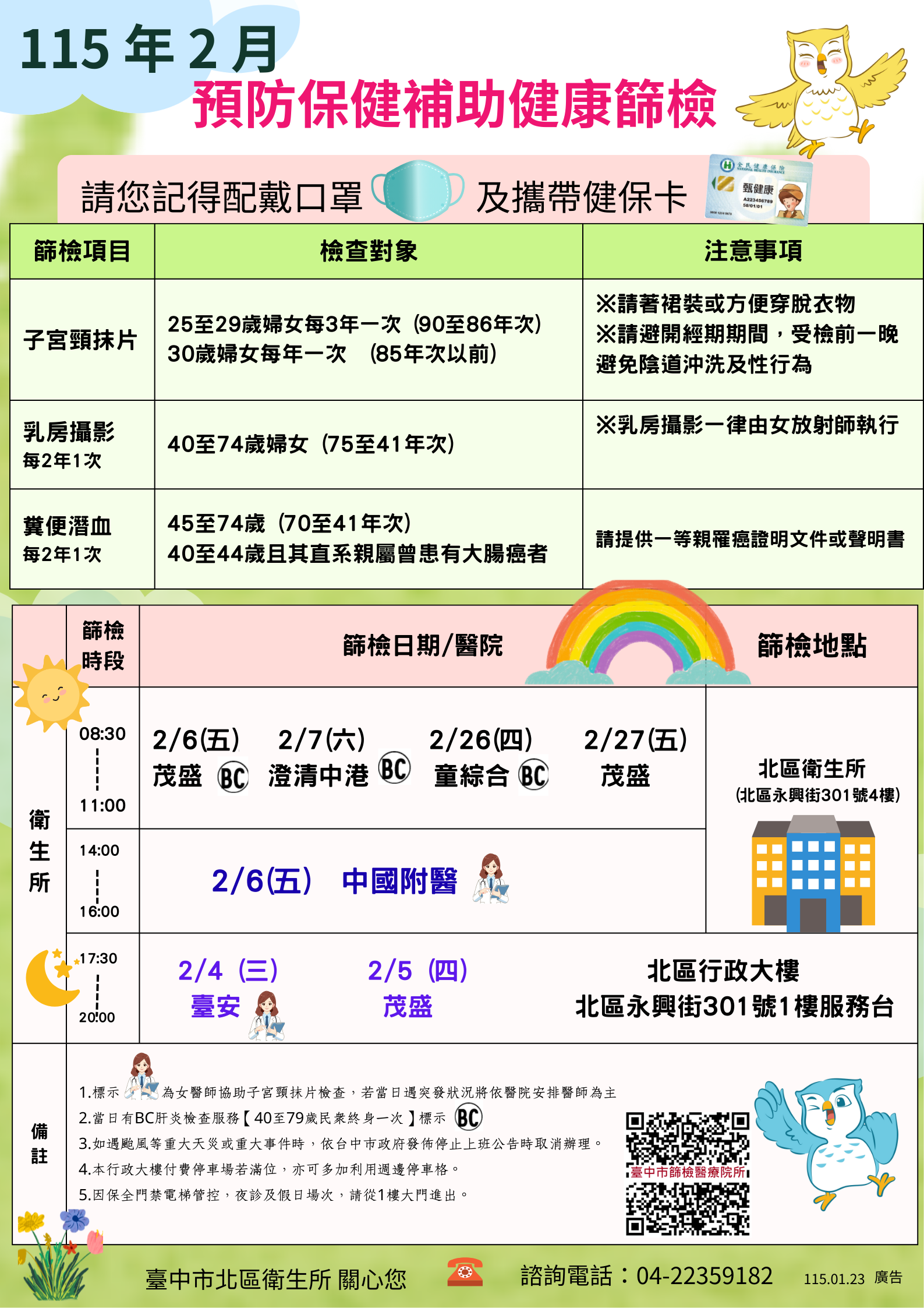 2. 當日可施作之檢查項目,需以現場健保卡查詢為主。