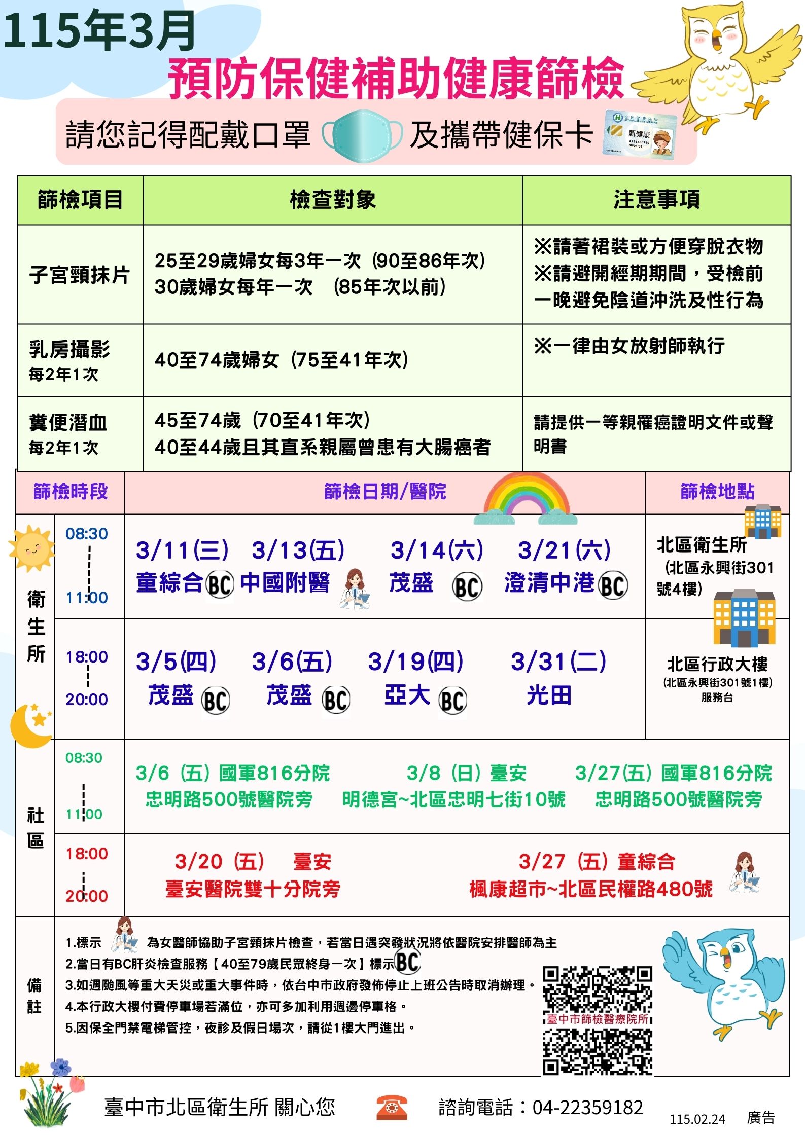 2. 當日可施作之檢查項目,需以現場健保卡查詢為主。